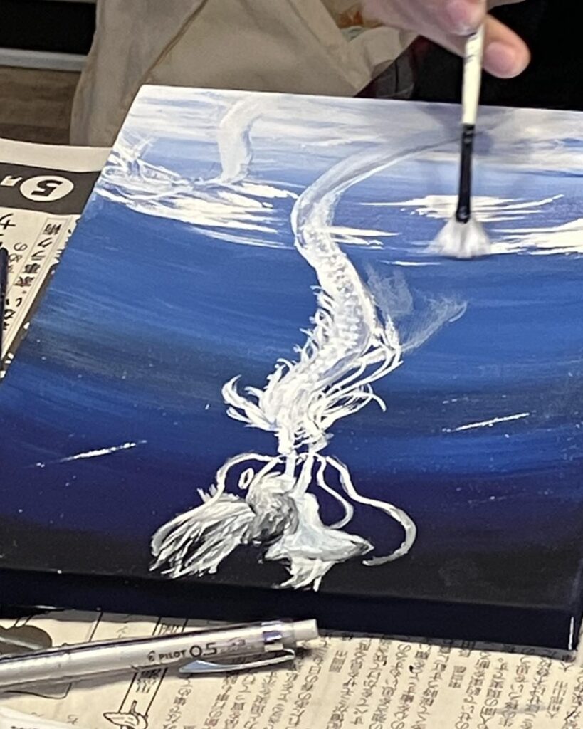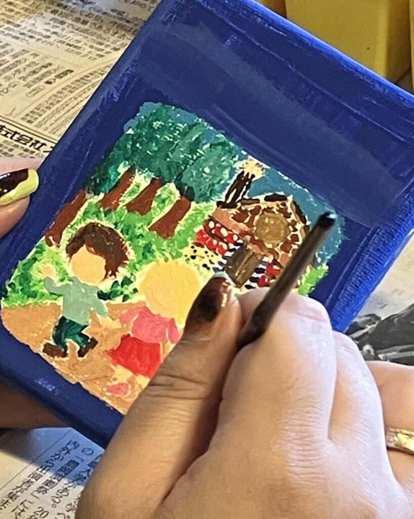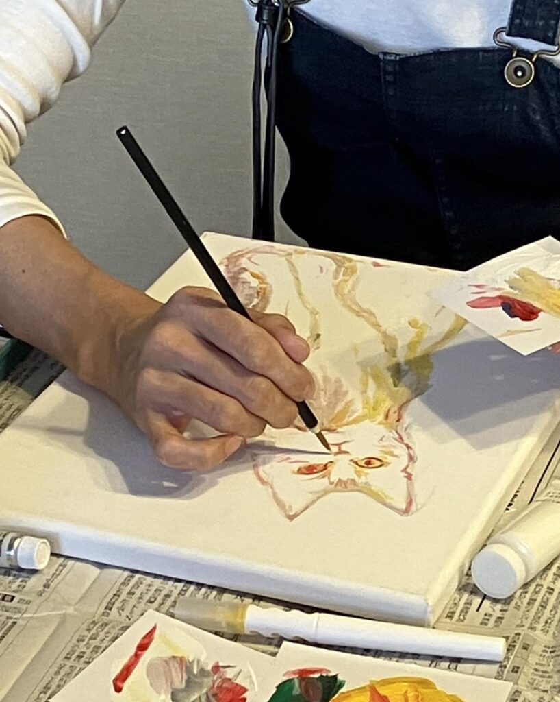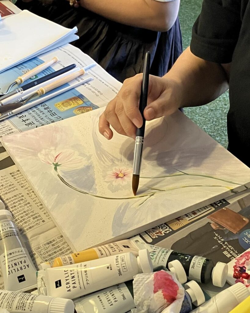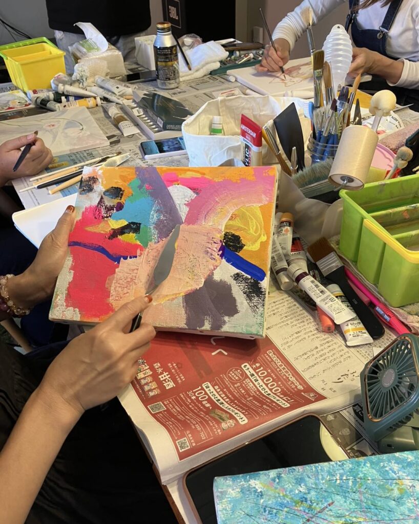 制作に集中しながら、自然と人生をテーマにしたような会話で盛り上がりました。「今の気持ちが、そのままキャンバスに表現されるんだね」と、改めて気づきのあるひとときでした。