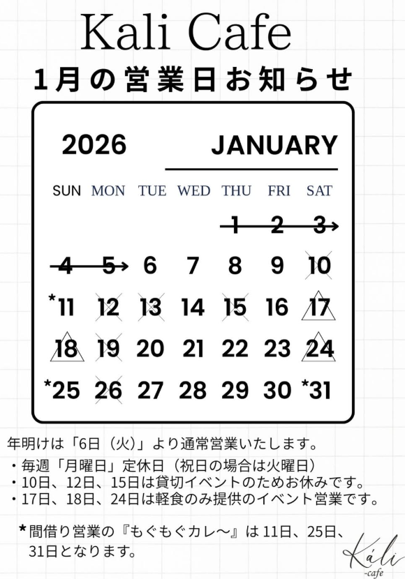 2026年もKali Cafe をどうぞ宜しくお願いします🎍