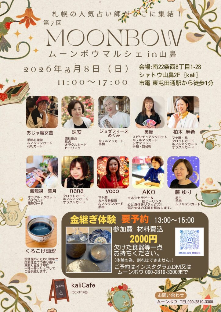 今回は総勢10名の個性豊かな鑑定師による占いに加え、こだわりのコーヒーや、物を大切にする心を育む「金継ぎ体験」も実施します!
